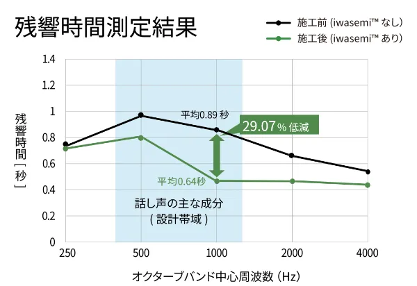 在試驗階段測量的殘響時間中,對應人聲頻率帶(500~1000Hz)的平均殘響時間,從 0.89 秒降至 0.64 秒,獲得公司內部高度評價。