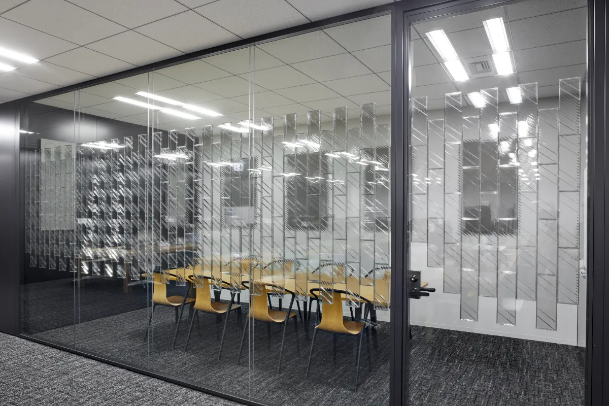 iwasemi 在不損失玻璃牆開放感的同時,還兼具遮蔽效果,因此不僅是吸音材料,更被視為能全面升級空間的解決方案,獲得極高評價。