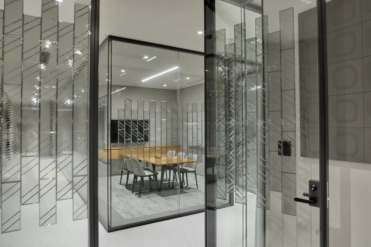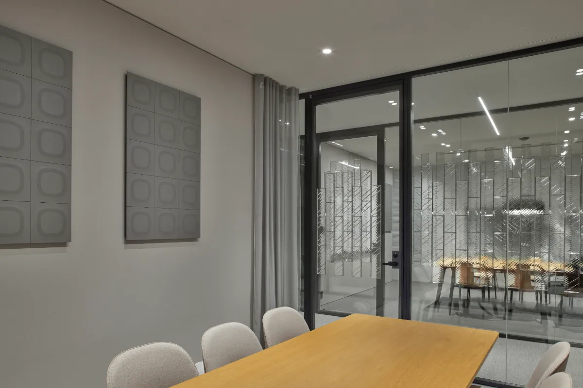 此產品不僅僅是吸音材料,更在保留玻璃牆開放感的同時,帶來遮蔽效果與設計美感,