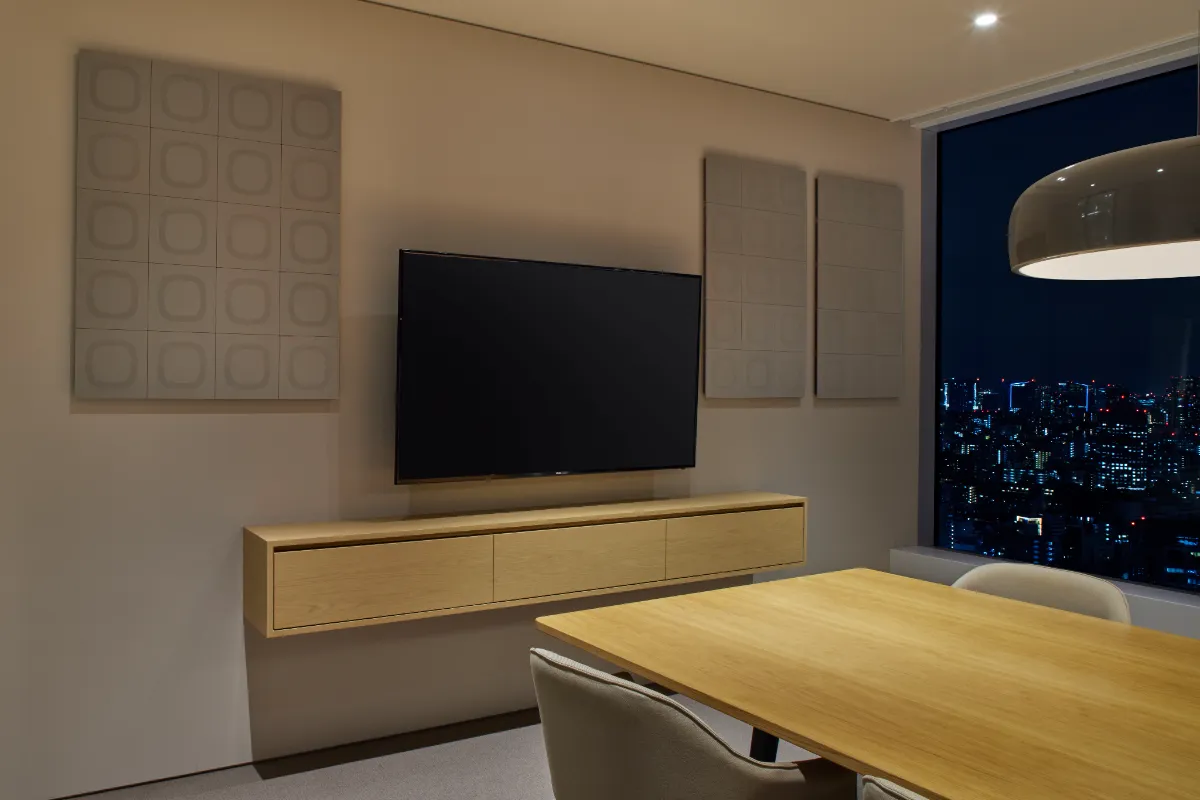 之後根據殘響時間的測量結果與使用頻率的綜合考量,首先在 4 間急需改善的會議室中正式安裝,接著再擴展至剩餘的 9 間。
